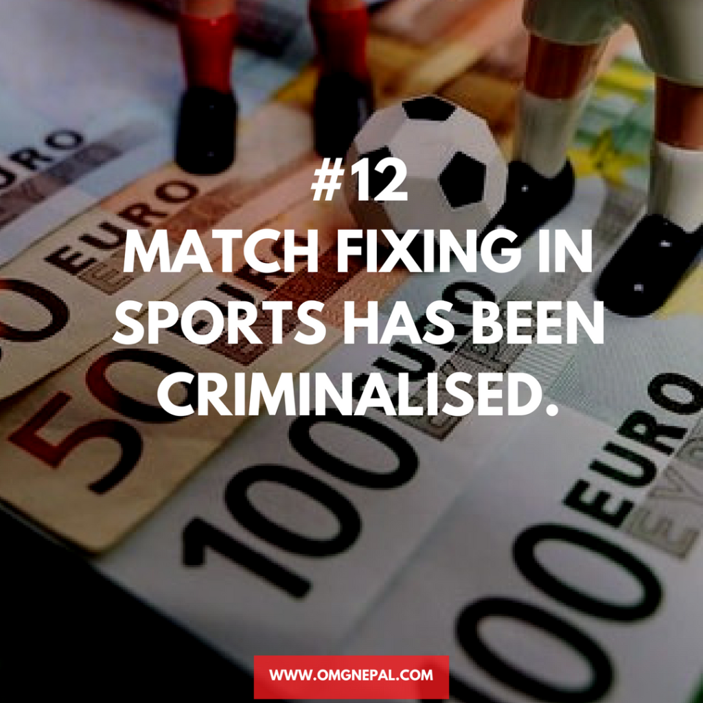 “Until now, there were no laws that convicted athletes or businesses and individuals involved in match-fixing. According to the new Criminal Code, those found guilty of match-fixing will face five years in prison and Rs. 50,000 fine, or both.”
