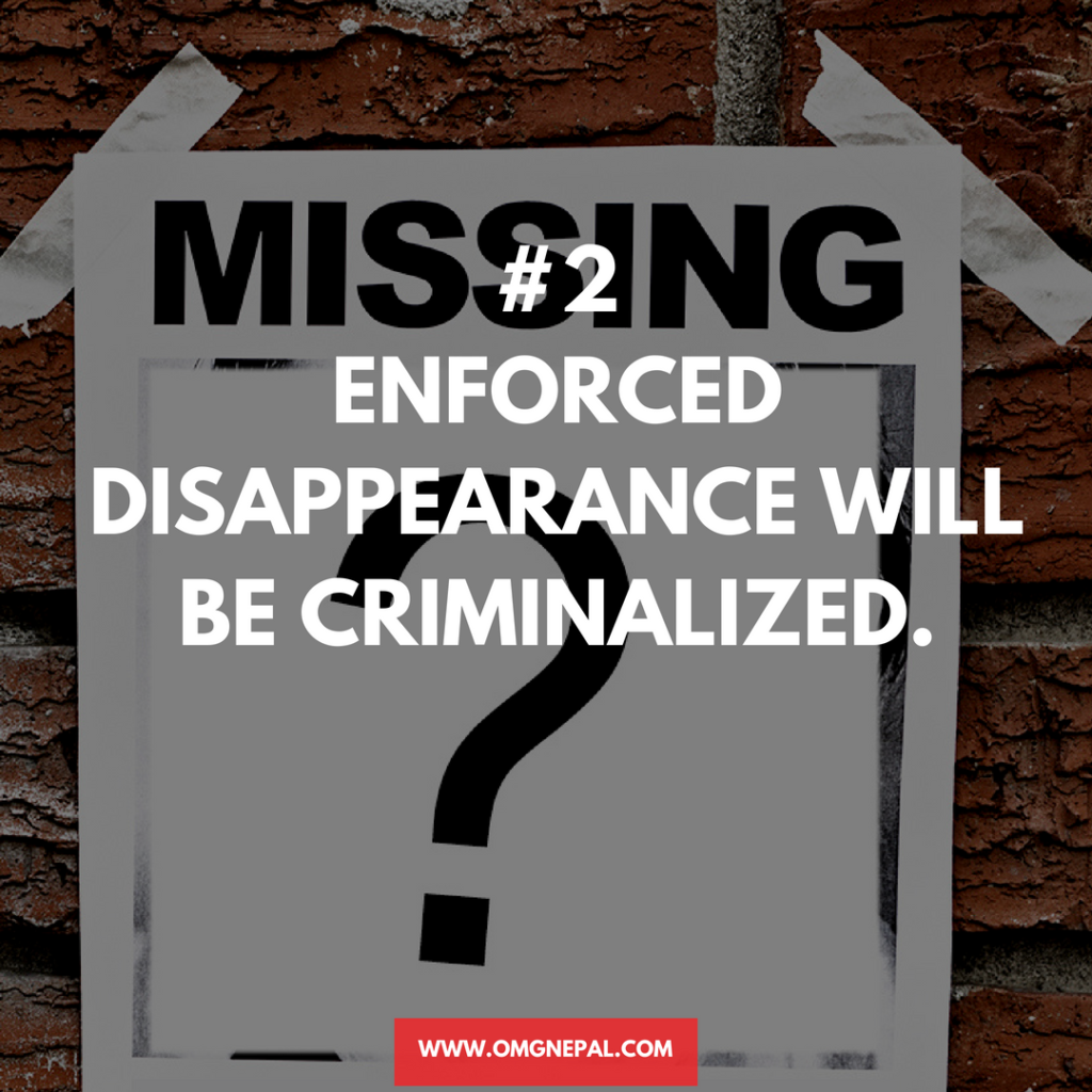 “This is the first time enforced disappearance of individuals has been criminalized. Anyone convicted of disappearing an individual will face 15 years of jail-term and Rs. 500,000 fine or both.”