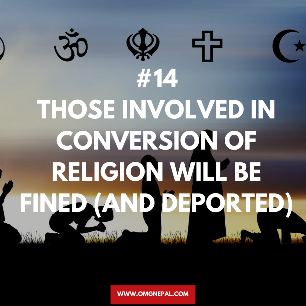 “Anybody who encourages or is involved in religion conversion using any means would be booked under criminal offense and would face a jail term of five years and Rs 50,000 fine. Any foreigner found guilty of such practice will be deported within a week.”